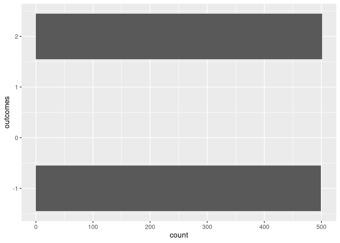 sim_resultsusing atidyrfunction so that each observation in the tibble refers to the outcome of a single simulation and materializes two variables:event(referring to either the first or second event) andoutcome(the outcome of that event). The resulting tibble should contain 20,000 observations. Assign this tibble to the namesim_results_tidy.-