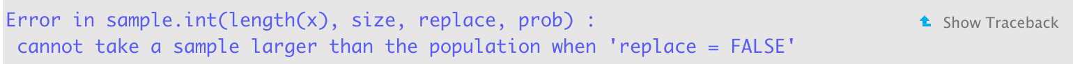 Note that the function has the form sample(vector_name, size), where vector_name is the name of the vector from which we will select an item and size is how many items we want to select from the vector.