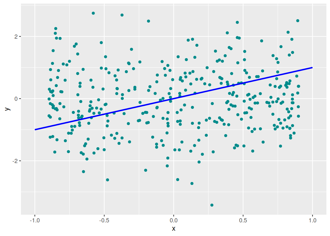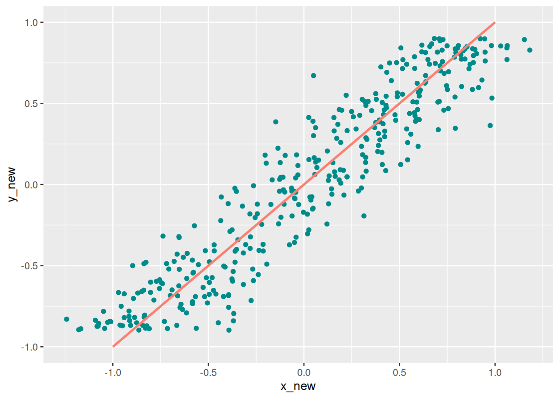 geom_line(data = tibble(x = c(-1,1), y = c(-1,1)),