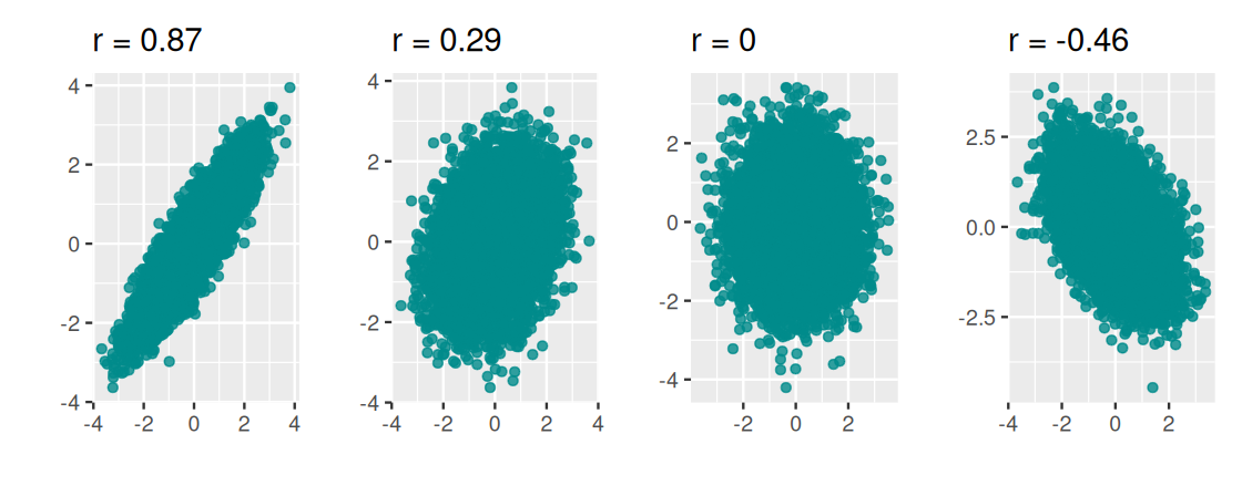To build some intuition for this quantity, following are four scatter plots. We labeled each with its corresponding .