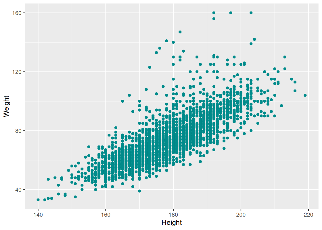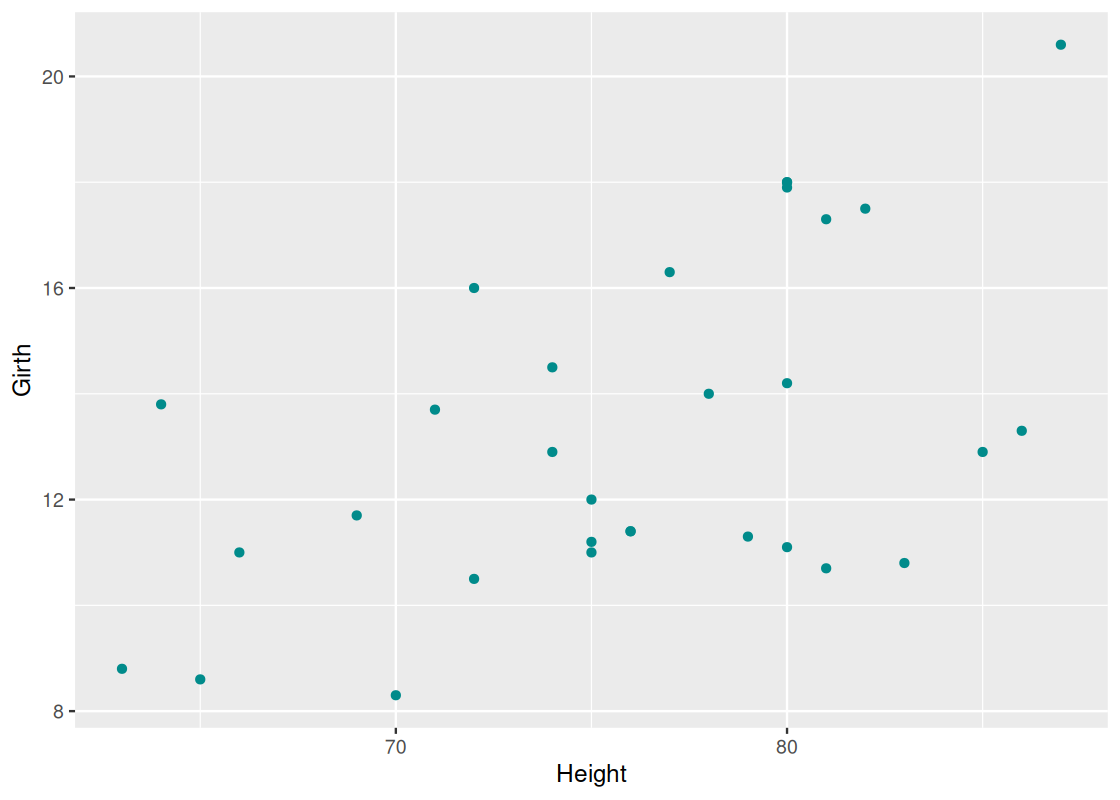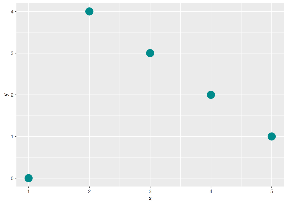 geom_point(aes(x = x, y = y), color = "darkcyan")
