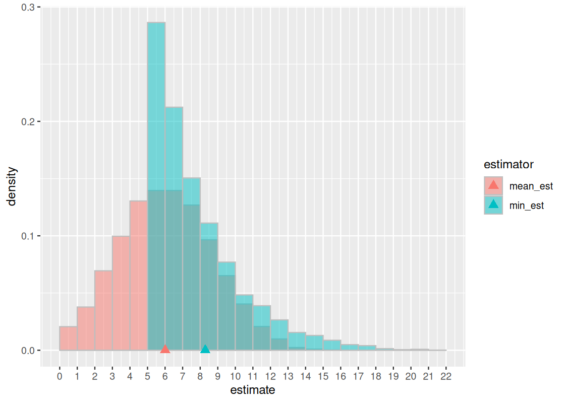 - The mean-based estimator is unbiased, that is, it overestimates about as often as it underestimates.
